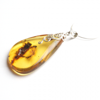 Bernsteinanhänger in natürlicher Form mit Halter aus Silber .